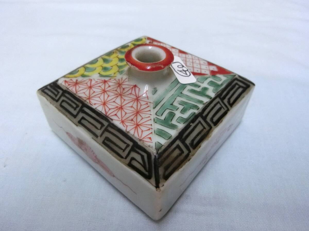 > 使って!【油壷 色絵四角型 希少な形・40・一輪挿し】◆灯火器 ランプ 九谷 皿 鉢 壷 鑑賞 骨董 コレクション 収集
