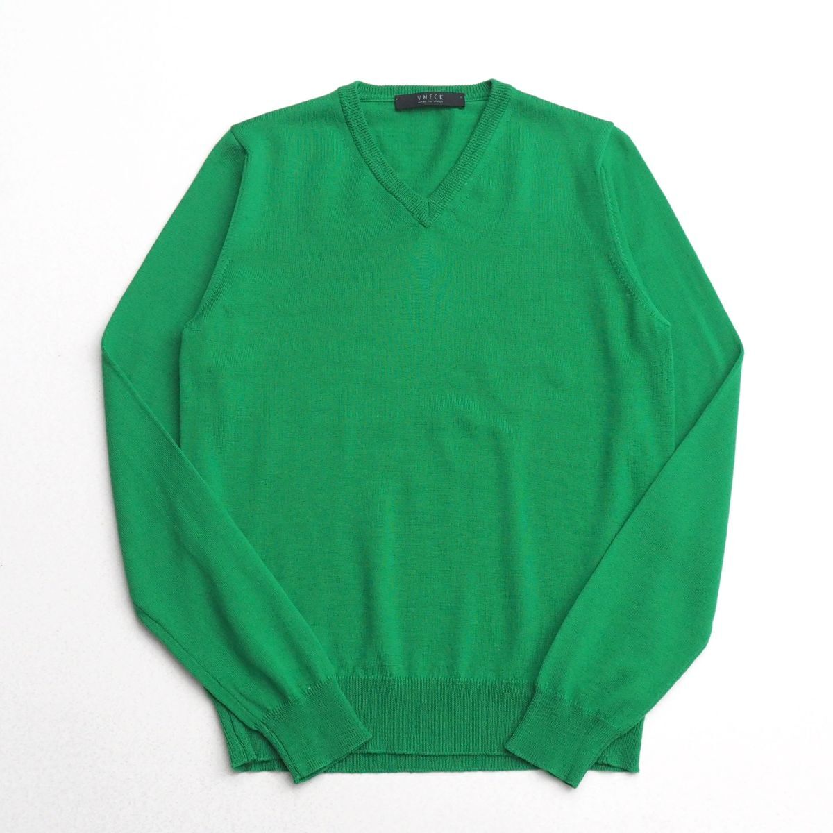 - TI9333▽イタリア製 V NECK ブイネック メンズ46 ハイゲージ ウールニット Vネックセーター グリーン系