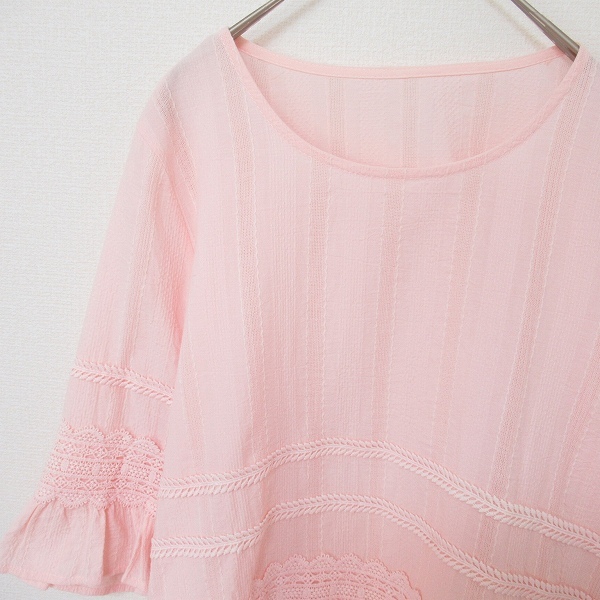 > ami-yu アミーユ ヴィンテージ 袖フリル レース ブラウス プルオーバー チュニック レディース [a894880ss]