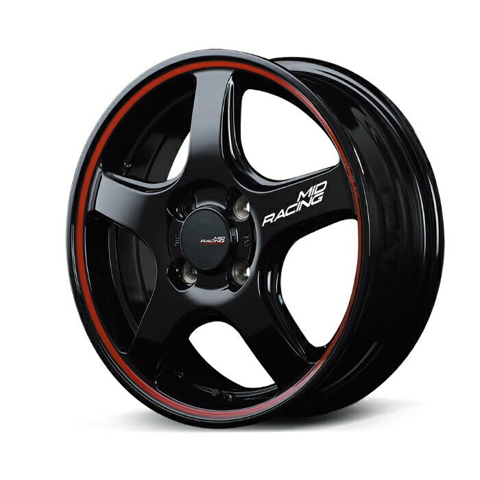 - MID Racing R50 アルミホイール4本セット 16x6.0J 4H PCD100 +43 (アールゴーマル ブラック/リムレッドライン)