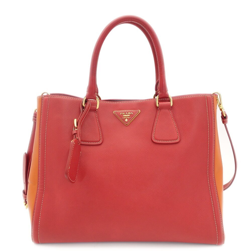 - プラダ PRADA ガレリア ハンドバッグ 2way バイカラー サフィアノレザー レッド×オレンジ ショルダー 三角ロゴ 7-9-725