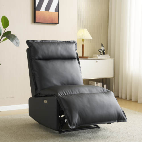 - リクライニングソファー 肘掛けなし 電動リクライニングソファ オットマン一体型 1人掛け USBポート付き 電動ソファ 【ブラック】 KU706