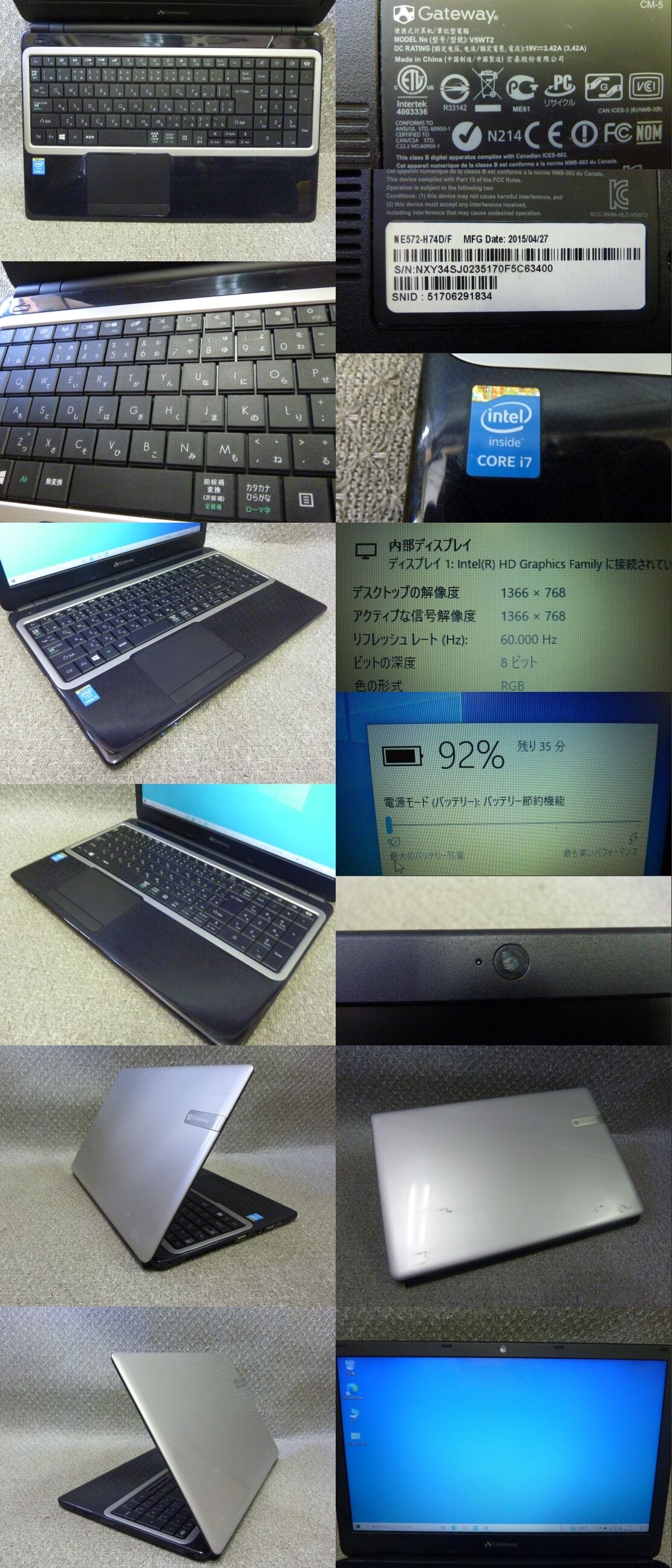 > Windows 7,10,11 OS選択可 15.6” Gateway NE572-H74D/F ★ Core i7-4510U/メモリ4GB/500GB/Sマルチ/無線/Webカメラ/リカバリ作成/2096