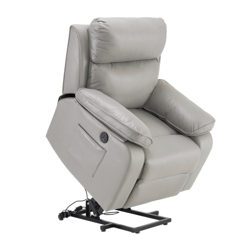 - リクライニングソファー 電動昇降 電動 立ち上がり リクライニングソファ オットマン一体型 1人掛け USBポート付き 【ライトグレー KU184