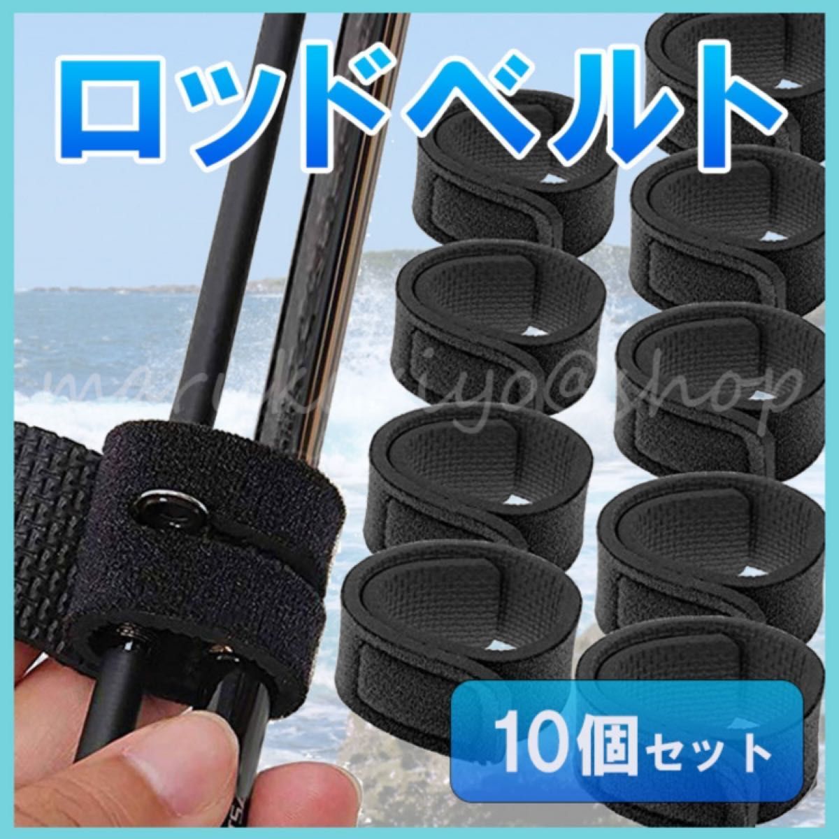 - ロッドベルト 10個セット 黒 ブラック 固定 釣竿 スリット付 滑り止め加工 持ち運び マジックテープ 簡単取付 結びバンド