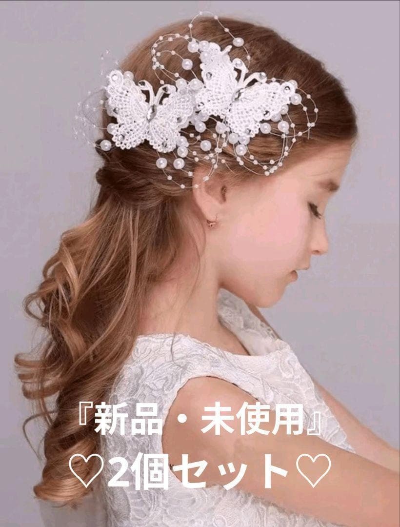 - バタフライ 蝶々 ヘアクリップ パール ビジュー付 ホワイト 2個セット☆