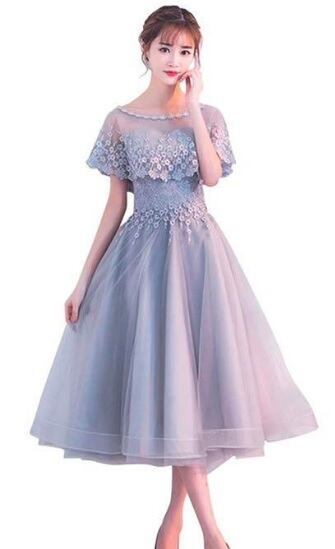 - 未使用 発表会 イベント ケープ付 ミディアム ドレス M 9号 (OPN1183)