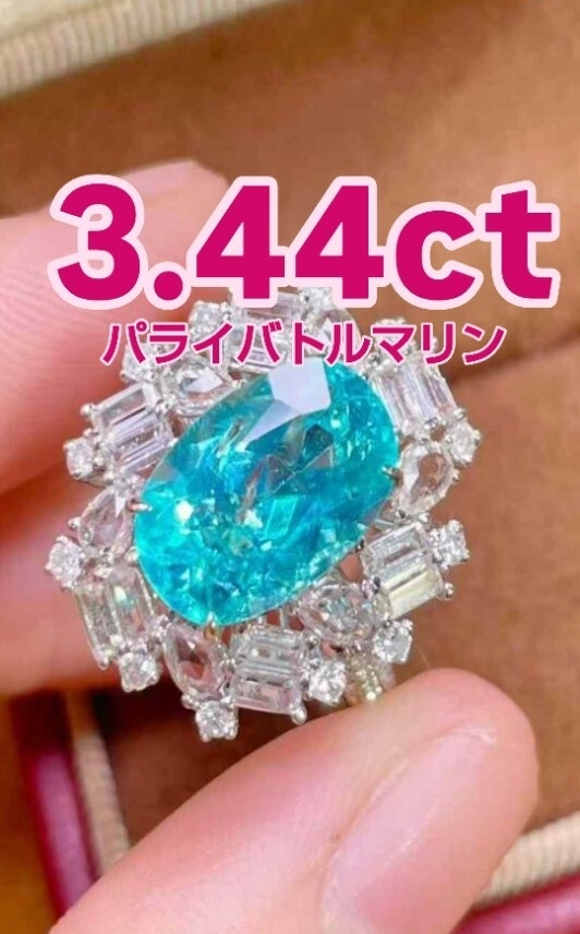- 3.44ct パライバトルマリン リング 「透明な輝き―― 3.44カラットが放つ、パライバの魅力。」