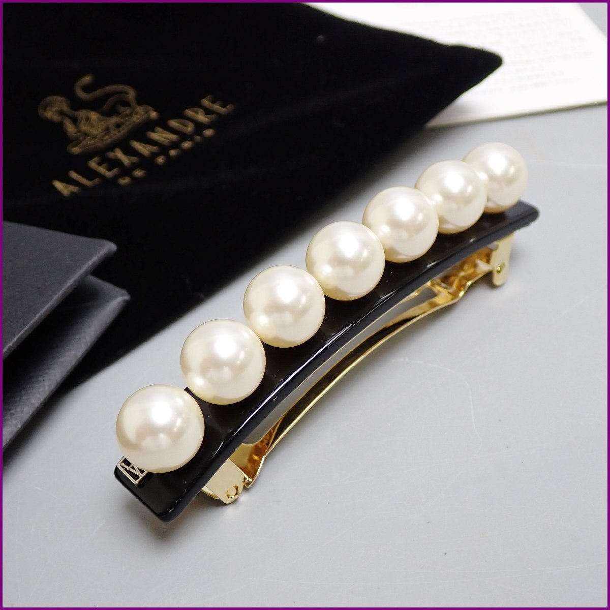 - ★未使用 ALEXANDRE DE PARIS/アレクサンドルドゥパリ バレッタ 8cm AA8-16919-03/ブラック/パール/保管袋・ショッパー付き&2168400018