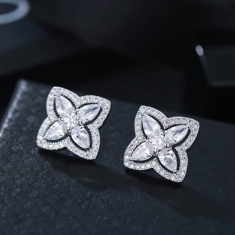 - AAA品質czジルコニア★クローバー型シルバー925色ピアス★着けるだけ耳元輝く