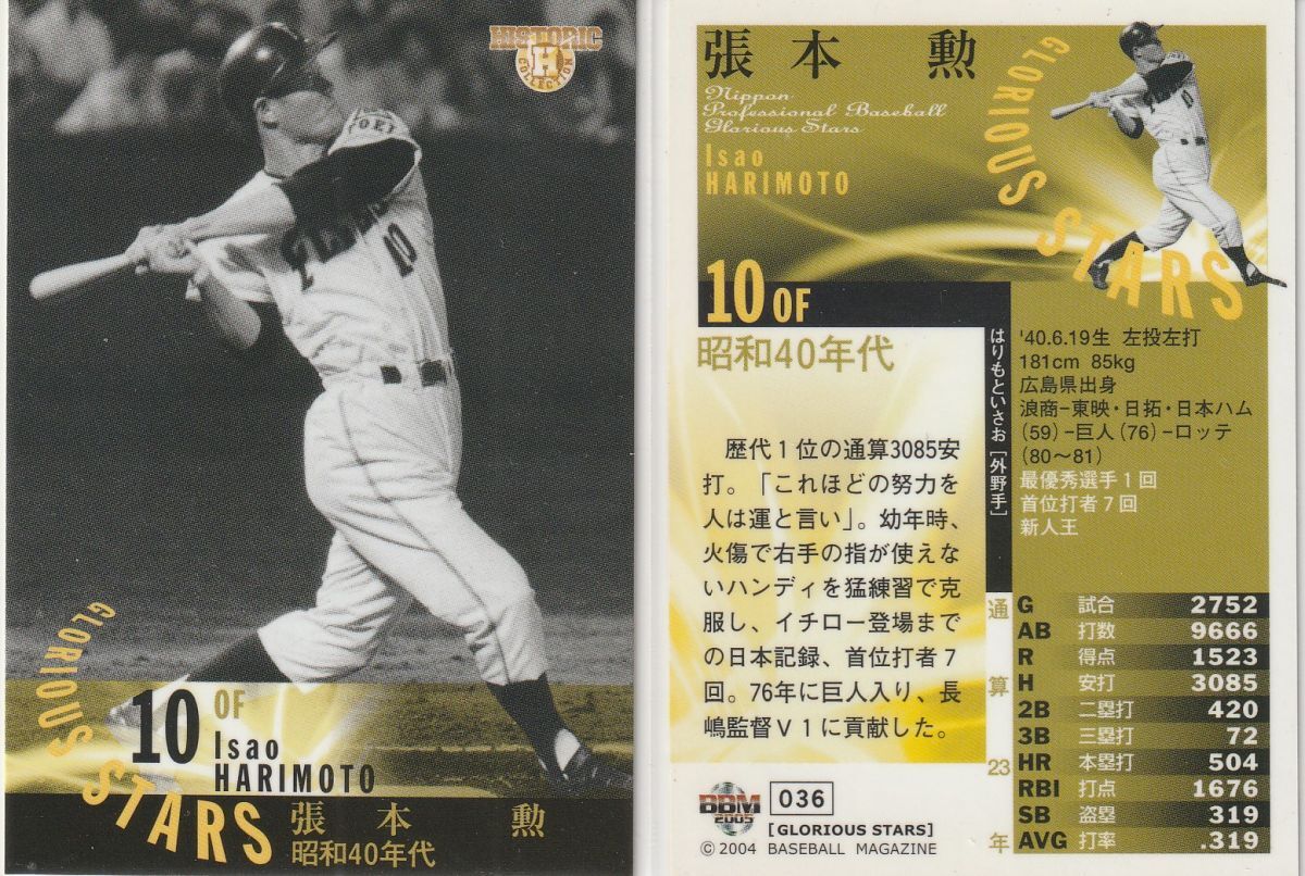 - ●2004BBM/きらめくスターたち 【張本 勲】OB選手 No.036:日本ハム、ロッテ R2