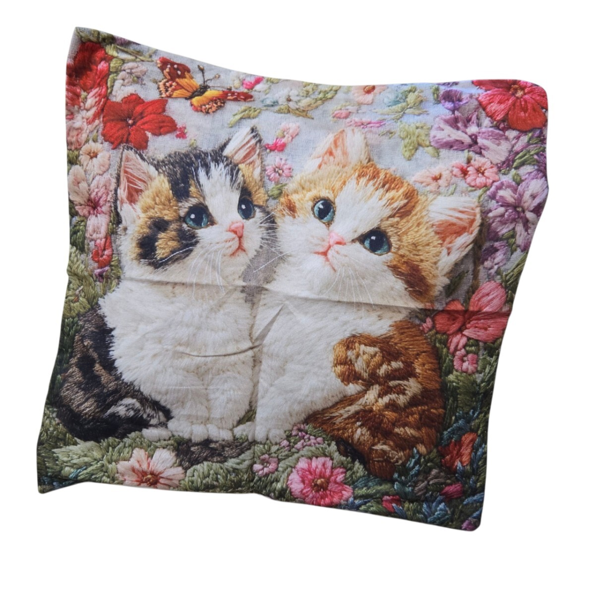 - クッションカバー 子猫 45㎝ 正方形 ソファー装飾 インテリア リビング 寝室 花 高品質片面プリント【チャーミングな子猫ちゃん達】