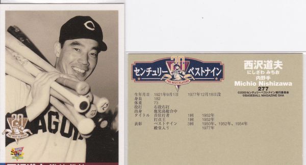 - ●2000BBM【西沢 道夫】センチュリー ベスト9 セピアパラレル No.277:中日 R