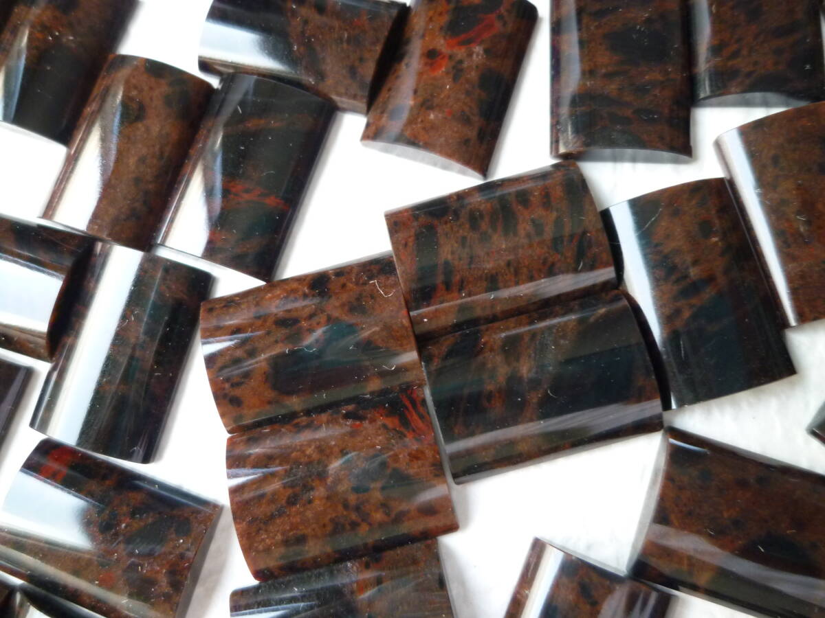 - 100個セット マホガニーオブシディアン 12×17×3mm 平かまぼこ型 まとめ 大量 赤腑黒曜石【匿名配送 送料込】