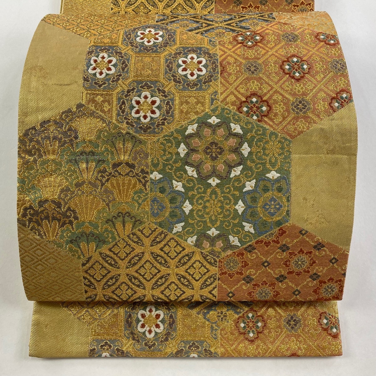 > 【美品】 袋帯 秀品 華文 有職文様 金糸 箔 金色 六通 正絹 【中古】