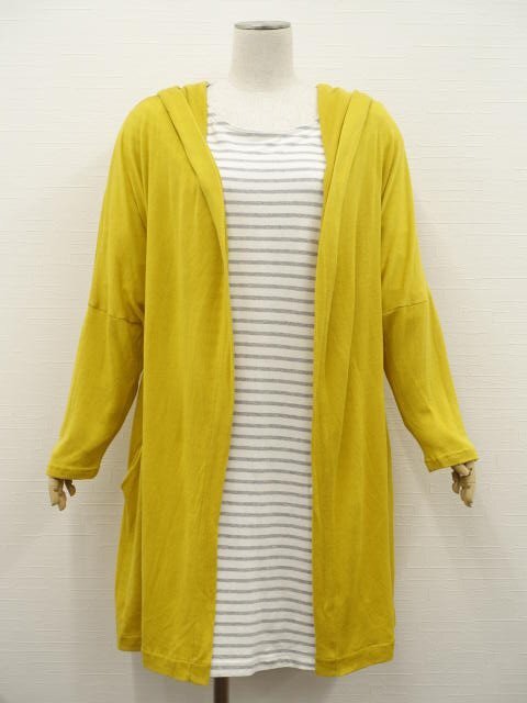 > 美品 SM2等 長袖フード付カーディガン+膝丈ワンピース コーデ2点セット M 黄系/白×グレー ボーダー ナチュラル・カジュアル系 20代~40代