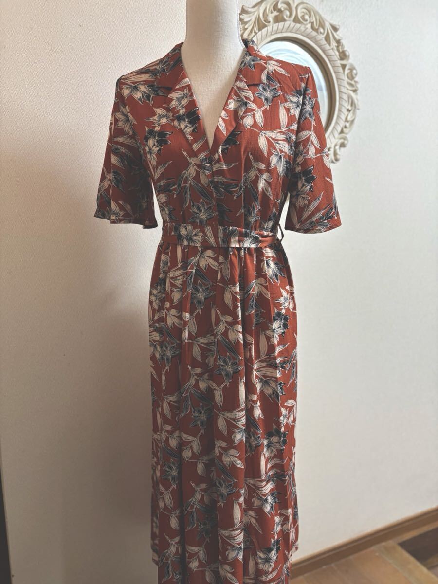 - 美品pumpkin 半袖ロングワンピース 後ろプリーツ使い リボン結び