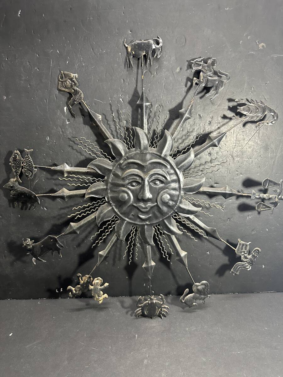 - ★コレクター必見!! 当時物 現状品 アイアン 鉄製 太陽 12星座 ビンテージデザイン 壁飾り ブラック インテリア 雑貨 置物 お洒落 KZ741