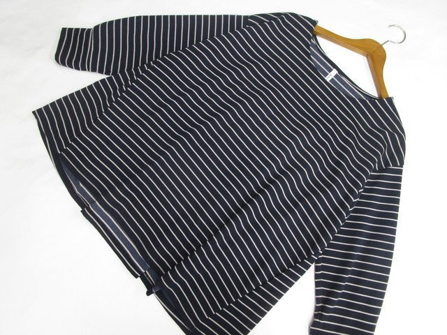 > 大きいサイズ 美品 Vanillastudio 長袖 ラウンドネック 洗えるカットソー 4L ネイビー×グレージュ ボーダー柄