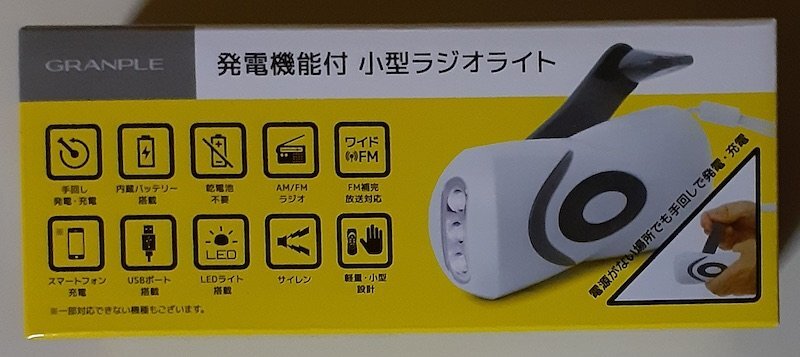 - 6804 未使用未開封 スマホ充電機能付き 5V 500mA バッテリー内蔵 ダイナモ 小型ラジオライト GRSRLT 災害対策 手回し発電 GRANPLE