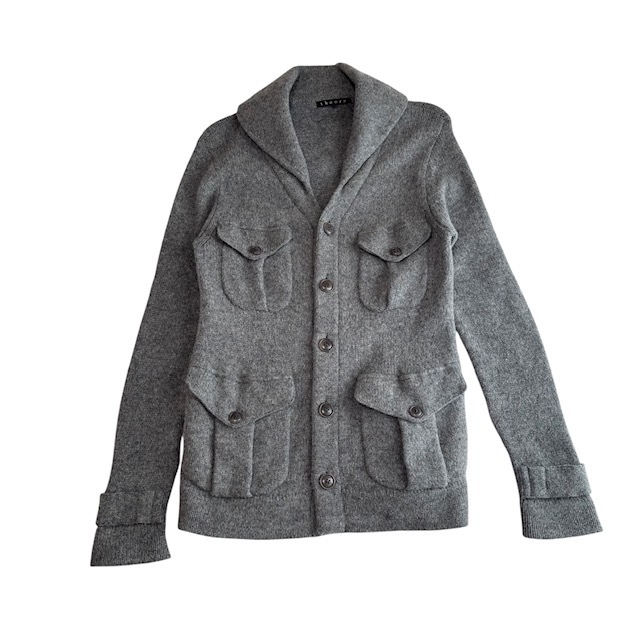- 古着 セオリー theory ニットジャケット カーディガン クリーニング済み グレー メンズ サイズ38