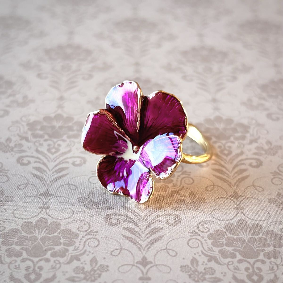 - 【11号】 KAZA カザ パルテール パンジーリング 指輪 花 フラワー 紫 パープル ゴールドカラー 金色 かわいい スミレ 菫 ヴィオラ ビオラ