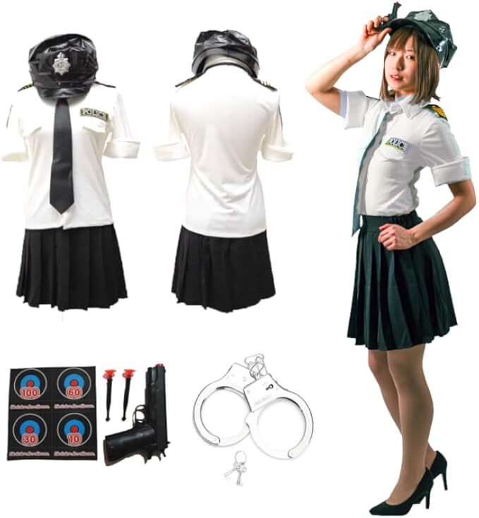 - [COCCIA] ポリス コスプレ 警察官 6点セット 警察 制服 スカート 帽子 拳銃 ピストル 手錠 ネクタイ ハロウィン 仮装 レディース ゴスロリ