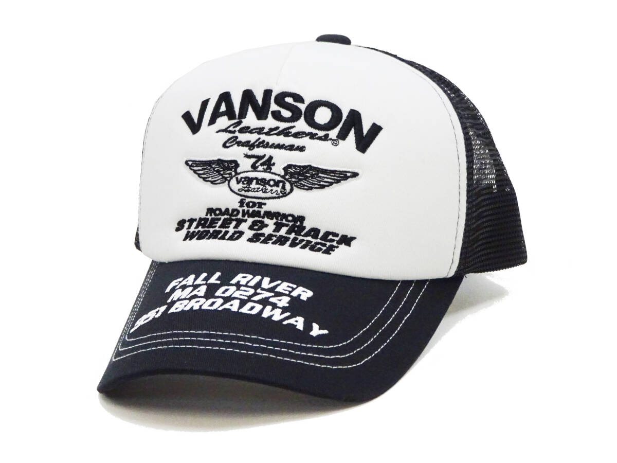 - バンソン メッシュキャップ VANSON 帽子 ベースボールキャップ ロゴ刺繍 VS25703S オフ×ブラック 新品