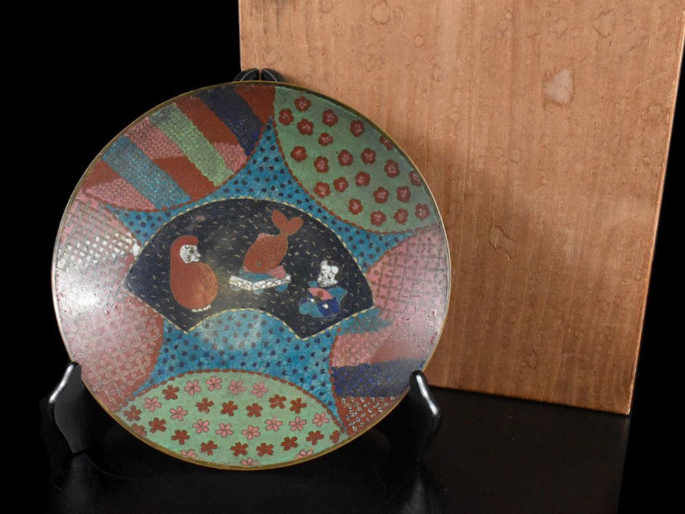 - 【雲】某収集家買取品 中国古玩 唐物 鯛達磨人物紋七宝皿 飾皿 直径30.3cm 箱付 古美術品(旧家蔵出)DJ477 PTghbnlfs
