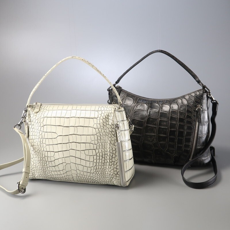 > MI1904■2点セット クロコダイルレザー 目地染め バニラ マットクロコ 本ワニ革 ハンドバッグ ショルダーバッグ 2way 手提げ 斜め掛け 鞄
