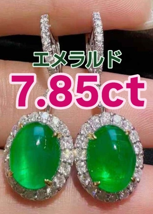 - 新作登場 7.85ct天然蛍光性エメラルド ピアス「天然蛍光が織りなす、深緑の奇跡ーー耳元で輝く、圧倒的な存在感。」新品未使用
