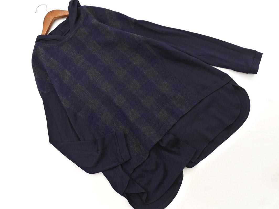 > COMME CA DU MODE コム サ デ モード ウール混 フェイクレイヤード フード ニット セーター size11/紺 ◇■ ☆ fjb6 レディース