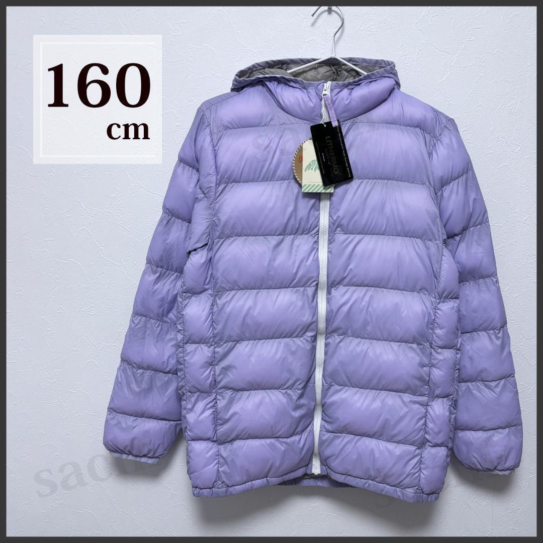- キッズ ファイバーダウン 160 パープル ダウンジャケット 透湿 防風 撥水 ジャンパー ブルゾン パーカー 防寒着