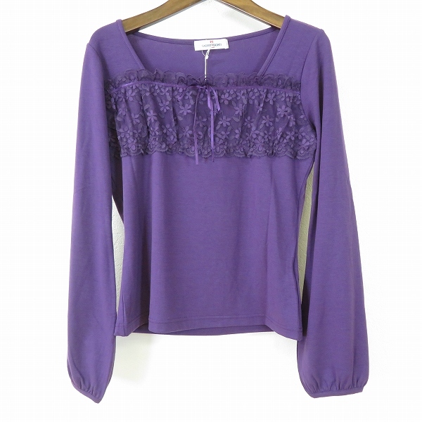 - #a ギャラリービスコンティ GALLERYVISCONTI カットソー 2 紫 胸元レース リボン 長袖 美品 日本製 レディース [938934] k01