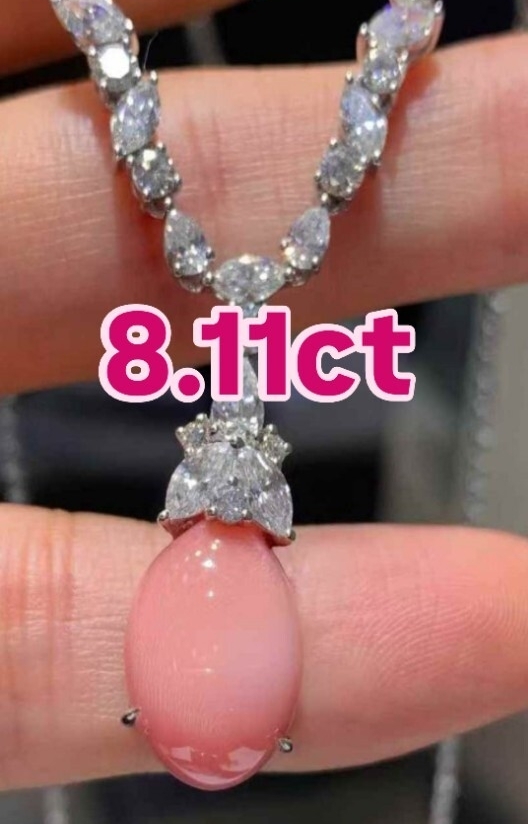 > 8.11ct フラミンゴピンク コンクパール ネックレスセット コレクターズ・アイテム、自然の奇跡自然の傑作8.11カラットが語る、比類なき物語