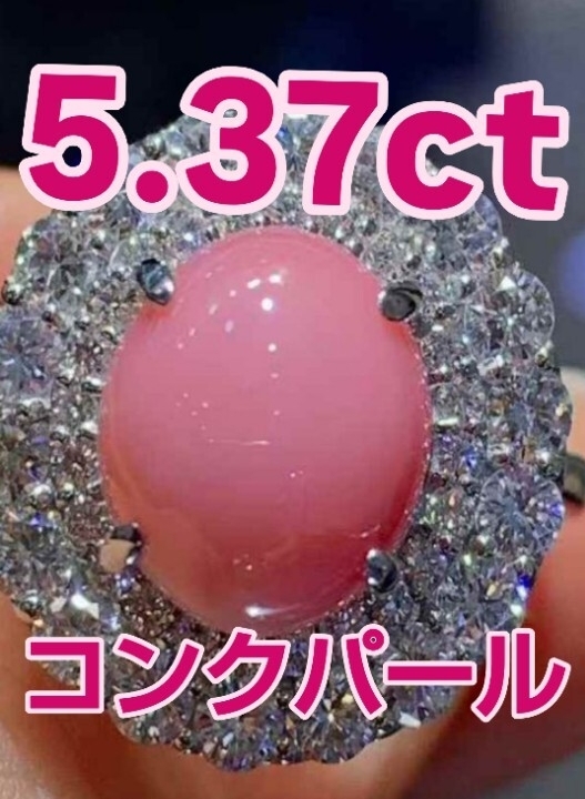 - 5.37ct フラミンゴピンク コンクパール PTリング 〜理想の正円が放つ、極上のピンク円満なる輝き—— 5.37カラットが奏でる、ピンクの調べ