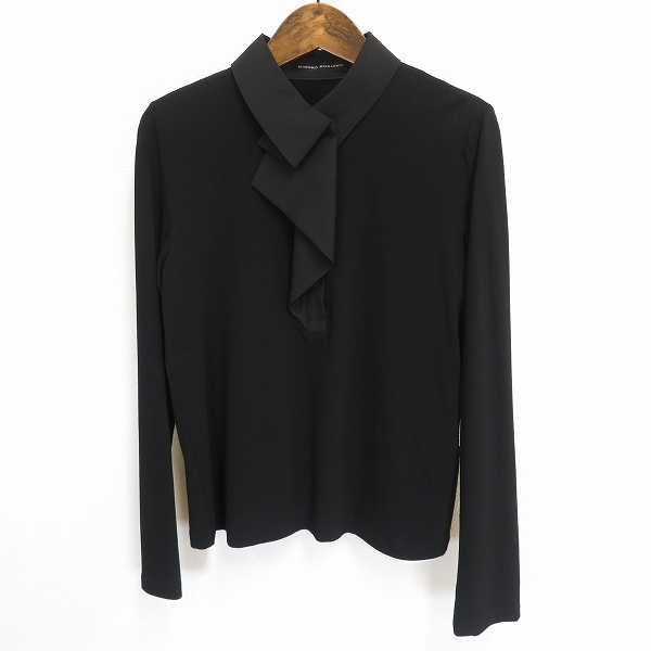 > #a ヒロココシノ HIROKO KOSHINO 長袖 カットソー 40 黒 ブラック ブラウス シャツ デザインカラー Lサイズ 日本製 860015 k01