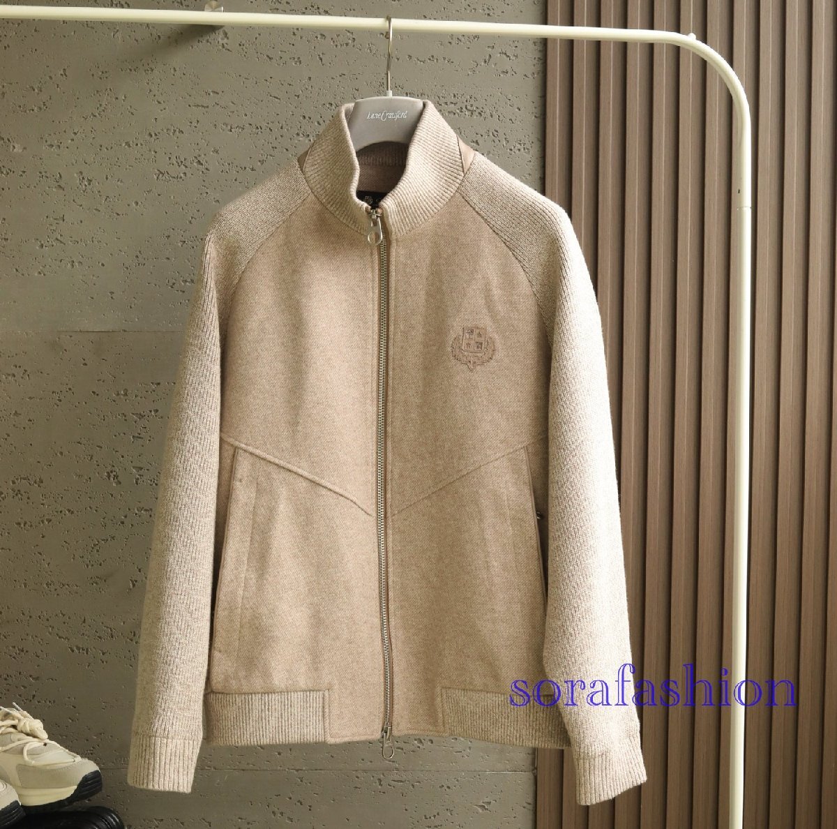- Loro Piana ロロピアーナ メンズジャケット ブルゾン キャメル L ニット切替 ジップアップ スカジャン アウター ジャンパー 綿/リヨセル