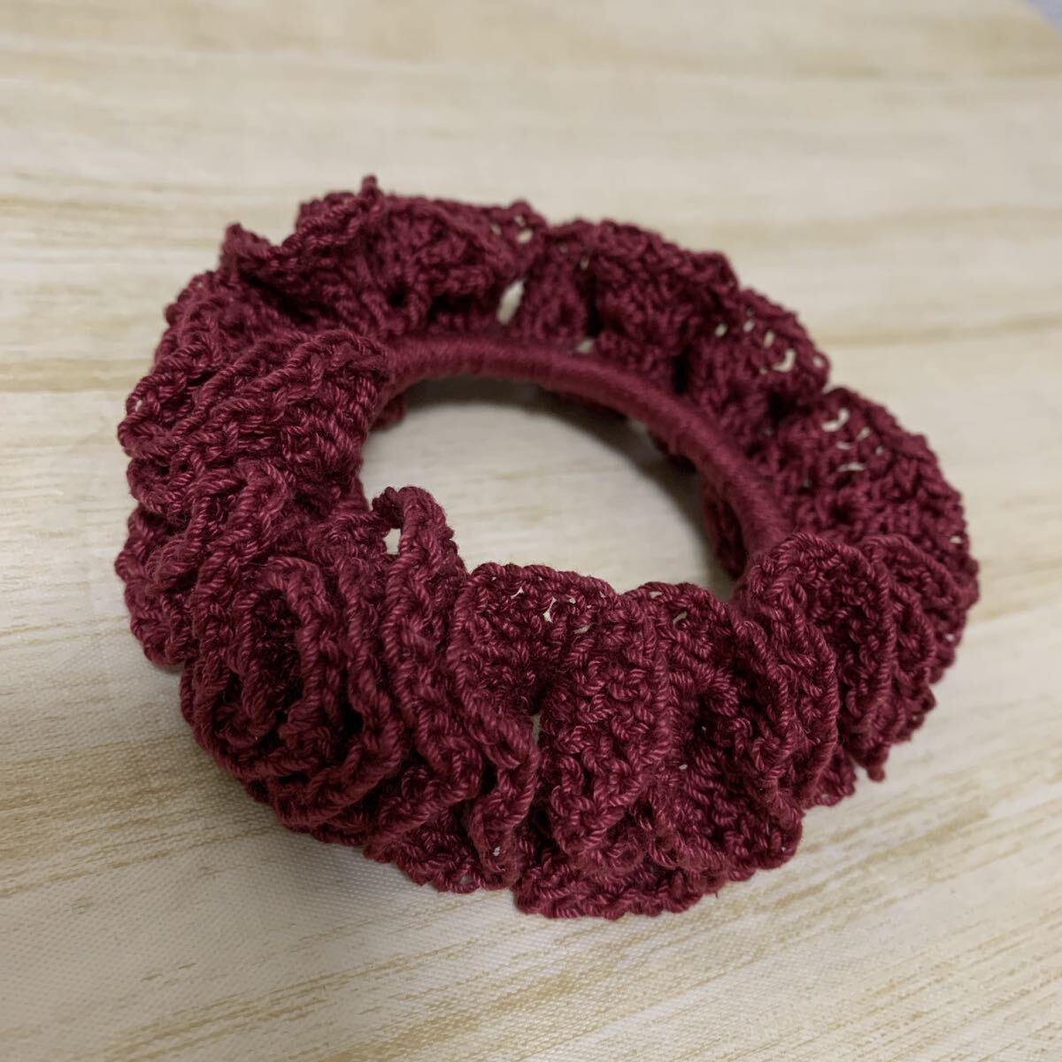 - 【d33】かぎ針 シンプル ワインレッド レース糸 フリル シュシュ