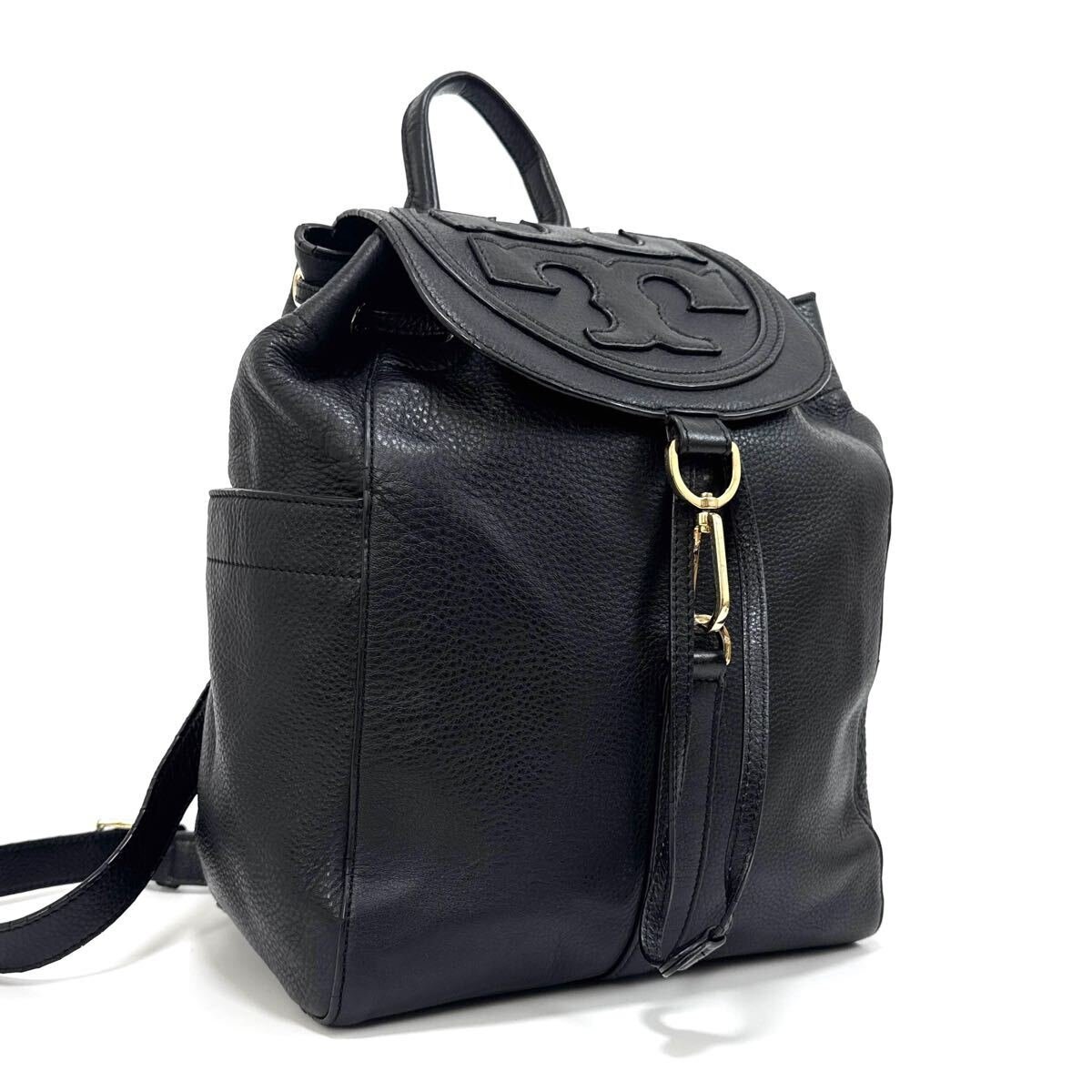- トリーバーチ リュックサック バックパック デイパック 鞄 ブラック 黒 ゴールド レザー 革 ロゴ Tory Burch