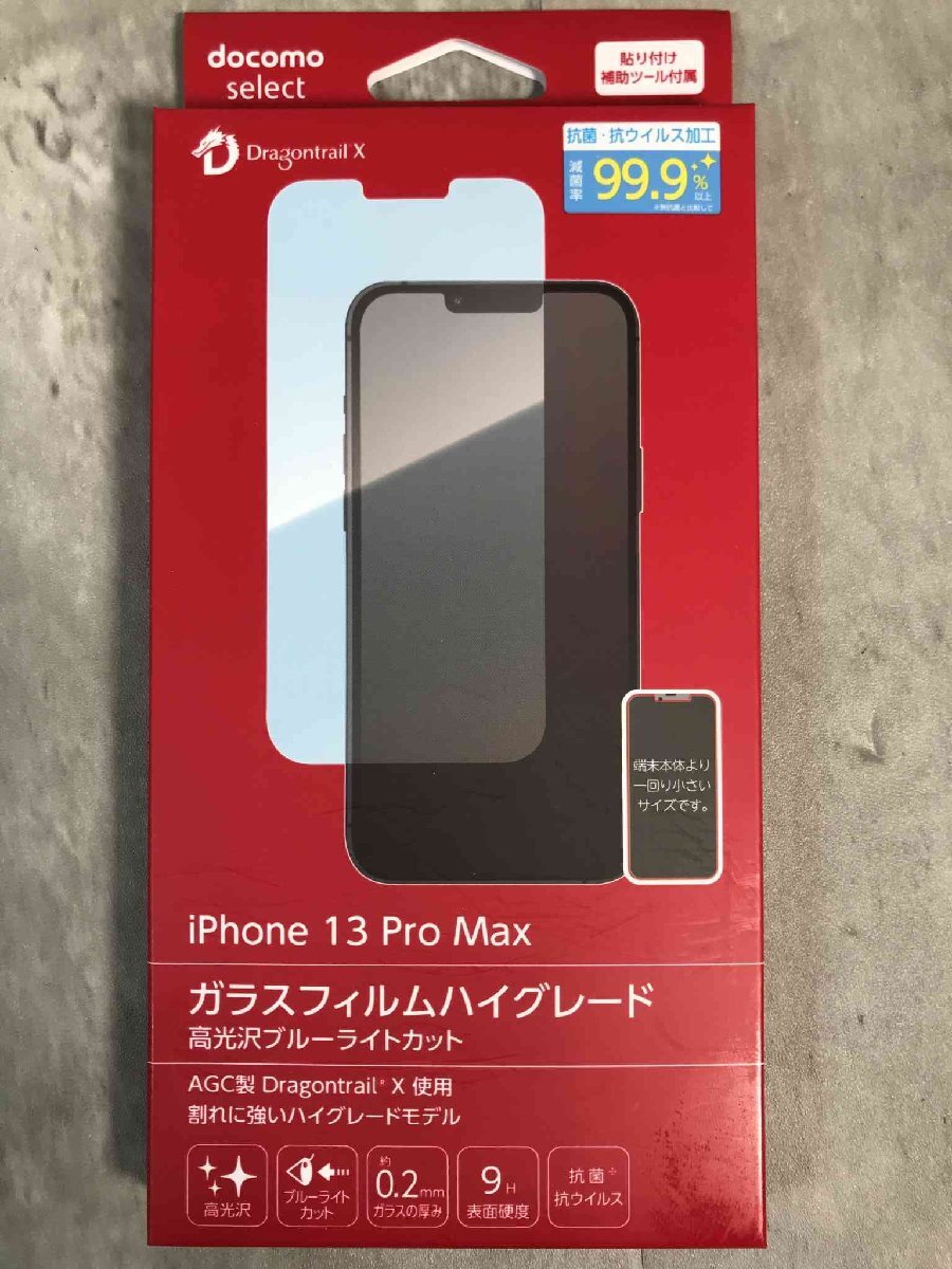 > 【新品未使用】docomo select ガラスフィルムハイグレード 高光沢ブルーライトカット iPhone13Pro Max【送料無料】