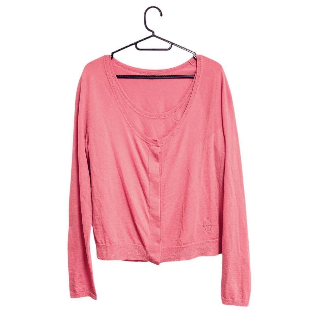 - 美品 国内正規品 エルメス HERMES カシミヤ ニット アンサンブル カーディガン Hロゴ カギ編み 42 半袖ニット 長袖 ピンク系 レディース
