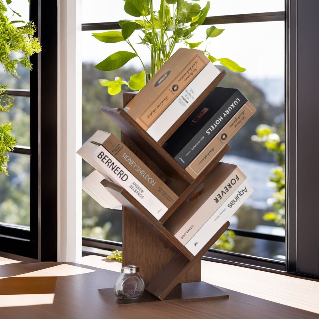 - ツリー型デスク上置収納ラック 本棚 ブックスタンド 高品質 安全設計 操作簡単
