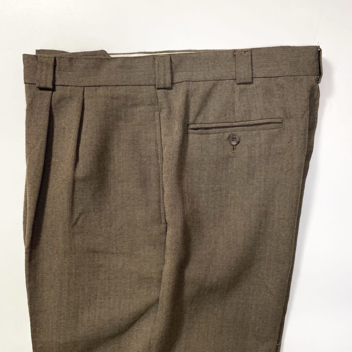 - 80s 90s Perry ellis ペリーエリス レーヨン ポリ 2タック スラックス ブラウン ビンテージ usa old 36×29 ギャバジン パンツ 00s 茶