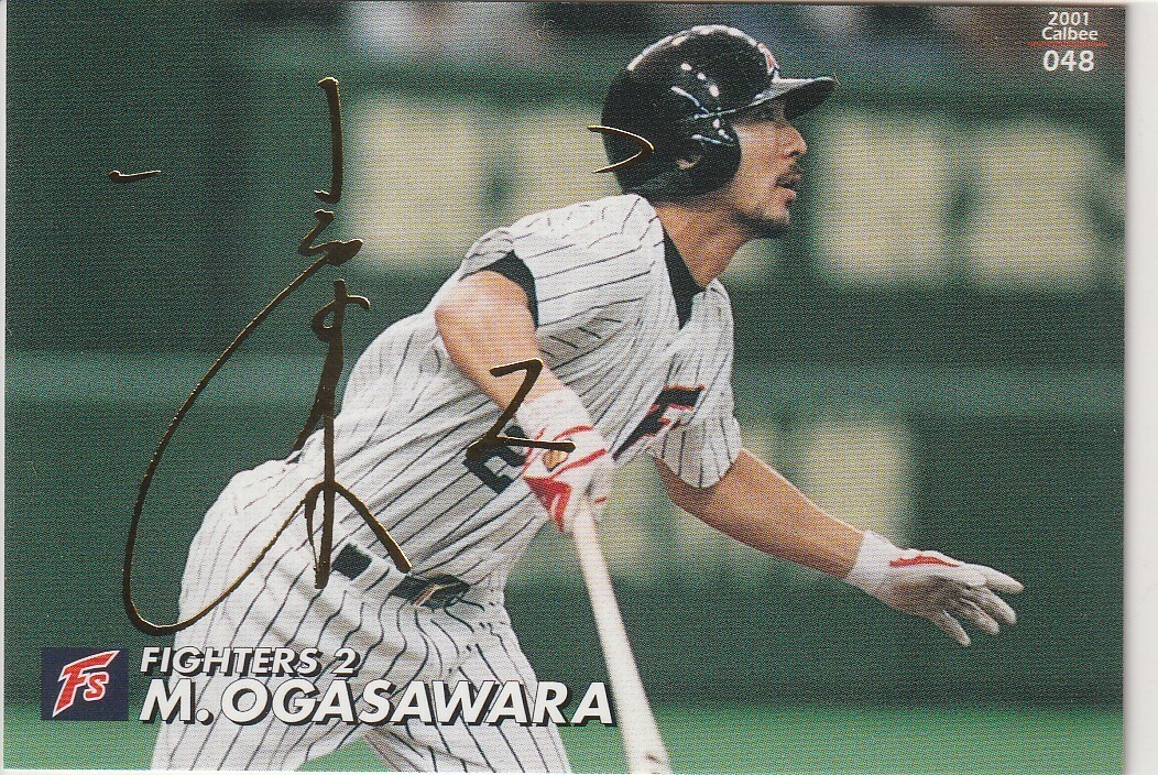 - ●2001カルビー【小笠原 道大】プレ版:金箔押サインパラレル No.048:日本ハム