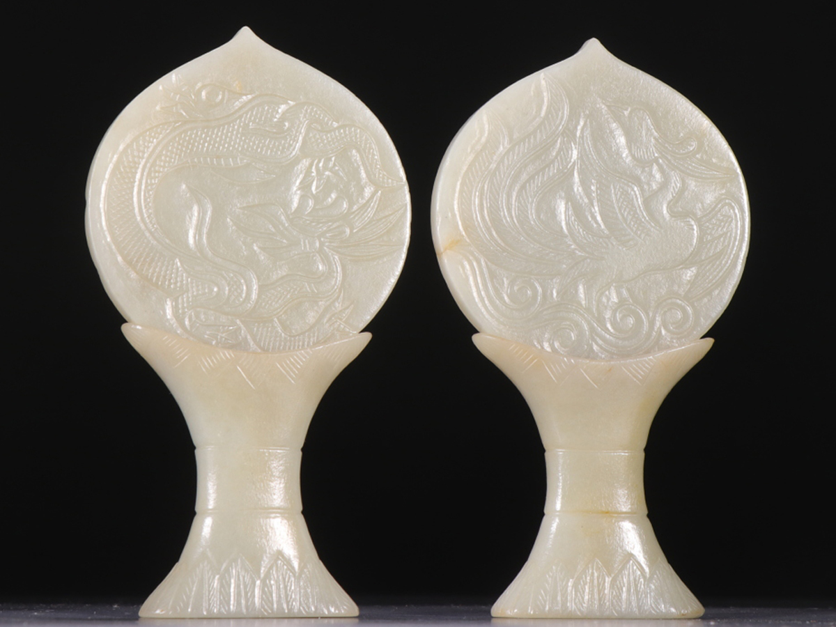 - ▽鴻▽清時代 和田玉 龍鳳紋挿屏一対 時代物 中国古美術 骨董品