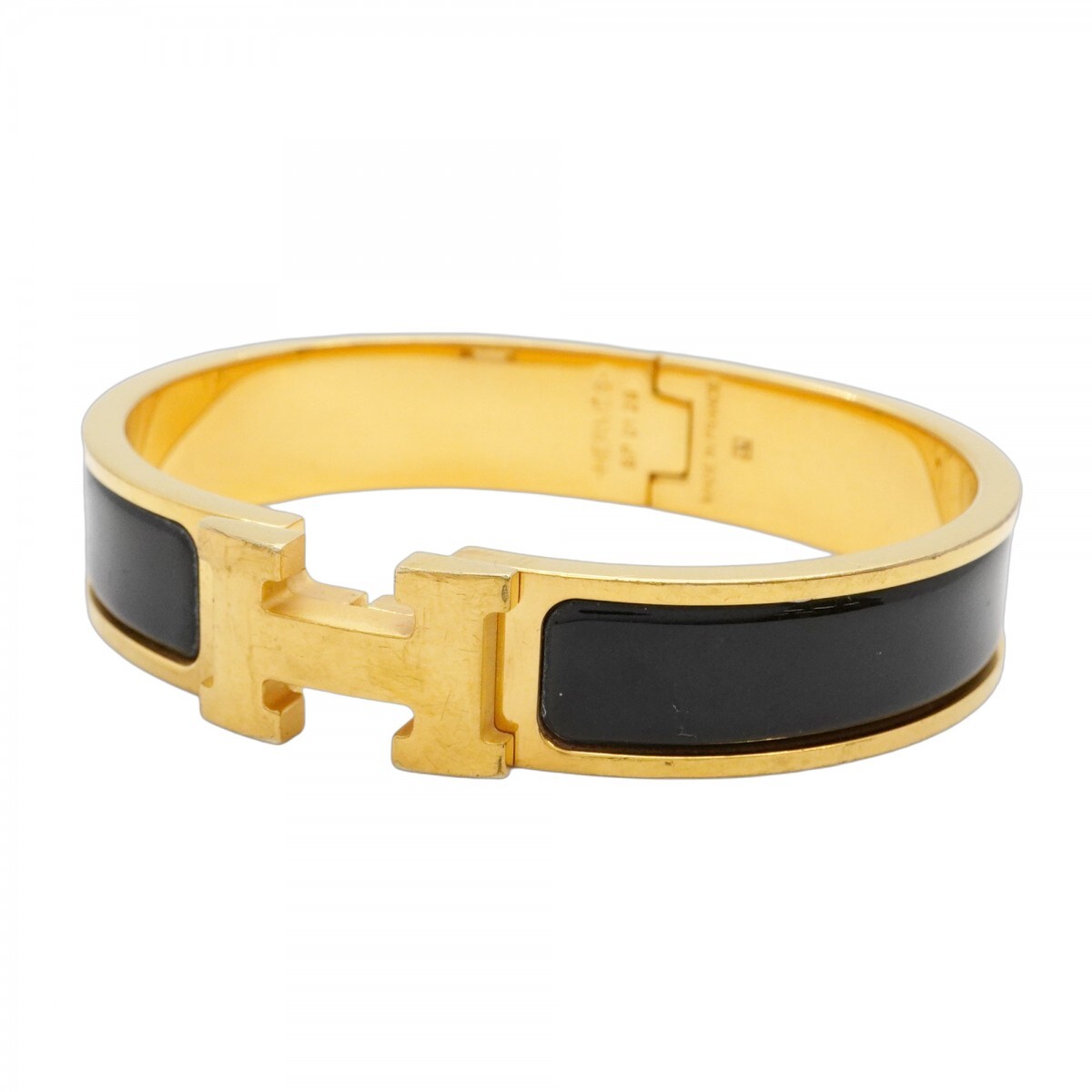- 【5jmb0134】エルメス バングル クリッククラックPM GPメッキ ゴールド ブラック【中古】レディース