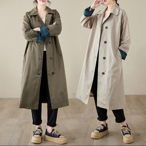 - スプリングコート ロングコート アウター 羽織 長袖 シンプル オフィスカジュアル きれいめ レディース M カーキ