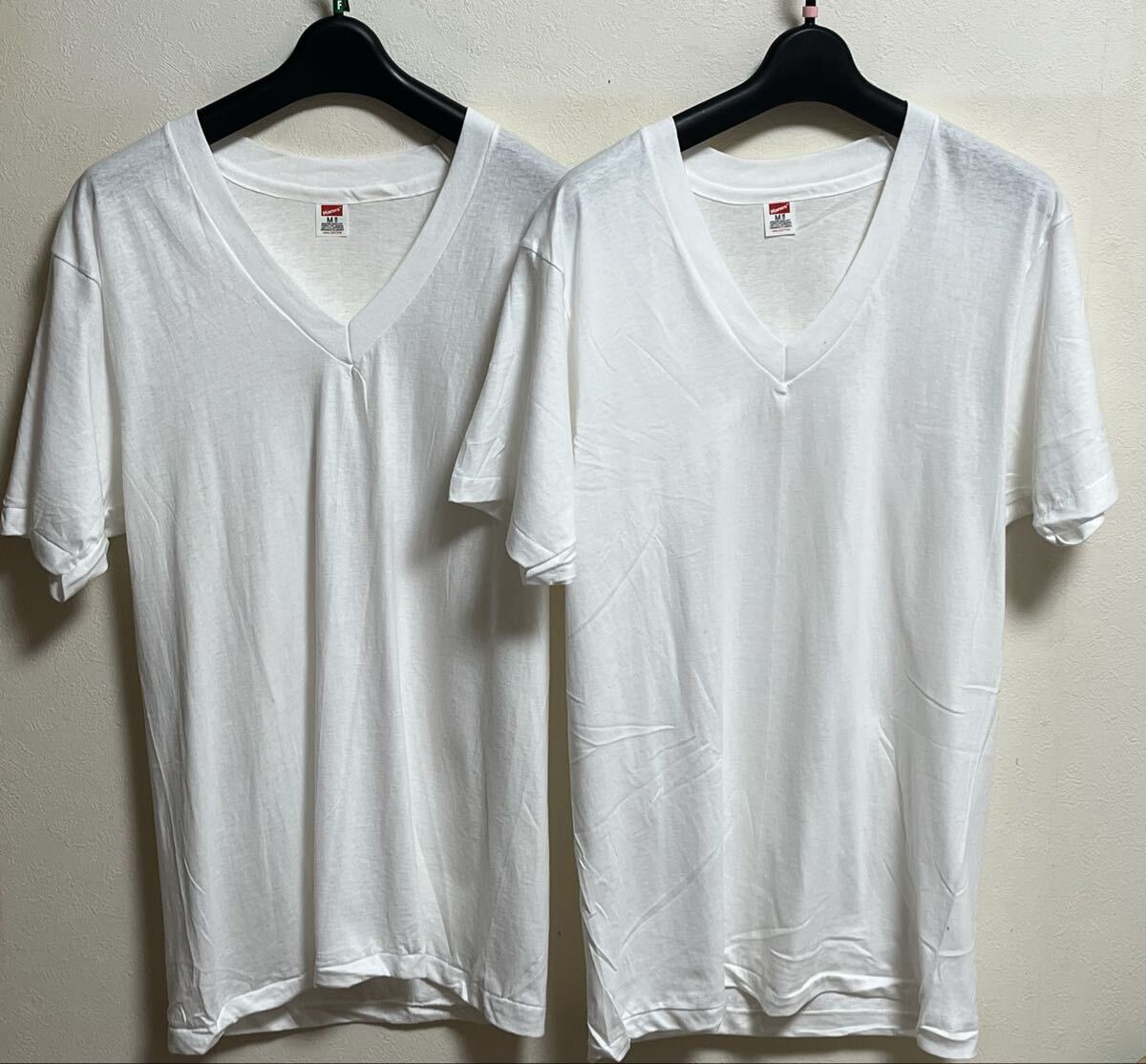 - デッドストック 80s Hanes Tシャツ M 2枚セット 無地 白 Vネック 裾シングル ヴィンテージ 50s 60s 70s 90s 新品 未使用 ヘインズ