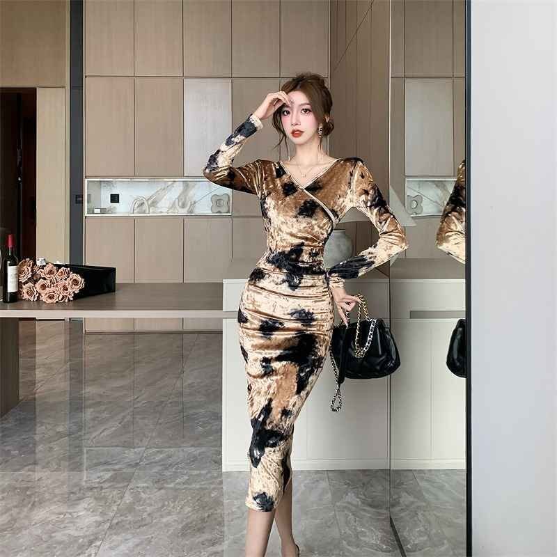 - 長袖ワンピース タイトワンピ ロングワンピ きれいめ ドレス 秋冬 L ワンカラー